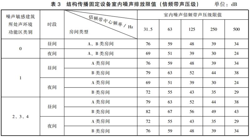 結(jié)構(gòu)傳播固定設(shè)備室內(nèi)噪聲排放限值