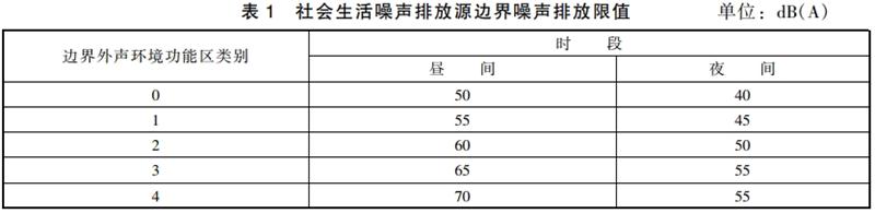 社會(huì)生活噪聲排放源邊界噪聲不得超過表 1 規(guī)定的排放限值。